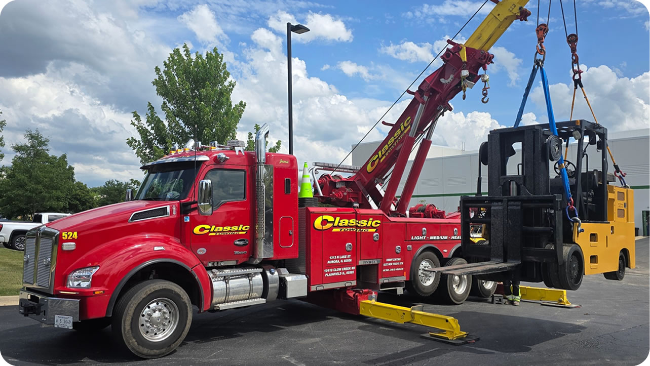 Welcome to Classic Heavy Duty Towing. We are the heavy duty towing and recovery experts of the Chicagoland area. No towing company is more trusted when it comes to heavy duty towing, recovery, and roadside assistance in the state of Illinois. We have the tow trucks, equipment, and expertise to handle any towing or recovery emergency. From cars to motorcycles, box trucks to buses, and semi-trucks to tractor-trailers no job is too big or small for Classic Towing to handle. Throughout our 30 years of operation we have built a reputation as a leader in the towing industry by focusing on customer service, using only the latest equipment and technology, and employing the best tow operators in the business. Call now for rapid response and affordable towing in Naperville, Plainfield, Aurora, Bolingbrook, Joliet, Lemont, Chicago, and all throughout Illinois and Northwest Indiana. In addition to light, medium, and heavy duty towing we also offer accident recovery and roadside assistance such as: jump starts, lock-outs, flat tire changes, winch-outs, fuel delivery, pull starts, and load shifts. With multiple tow yards located throughout the Chicagoland area we offer fast response times on: I-88, I-55, I-355, I-294, I-290, I-80, I-65, I-90 and all throughout the city and suburbs. So when you are in need of local “heavy duty towing near me” give Classic Towing a call. Our team of professional tow truck operators and experienced dispatchers are standing by ready to assist with a complete range of light, medium, and heavy duty towing services. Classic Towing is always ready to roll 24 hours-a-day, 7 days-a-week and can often have a light, medium, or heavy duty tow truck to the location of your breakdown in 30 minutes or less.